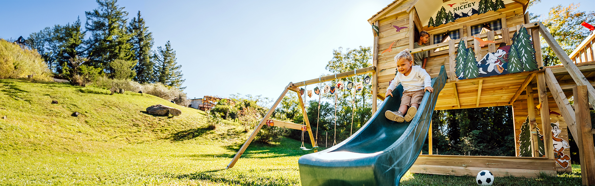 Wickey sees itself as a pioneer in the development of high-quality climbing frames and outdoor playground equipment for children. Our creative and lovingly designed wooden play equipment transforms every garden and outdoor area into a wonderful adventure paradise for children! Whether it's a swing, sandpit, climbing frame with slide or a model from our Disney range - all Wickey play equipment features impressive high quality and unique design. Combine a children's climbing frame with a swing frame or extend a playhouse with a sandpit - there are no limits to your creativity! Colourful accessories on your climbing frame or tower playhouse make the play experience perfect. If you're looking for a special sporting challenge as a family, you can get active together in the garden with our FIT outdoor fitness equipment. And to ensure that the adventures continue in your dreams, we offer lovingly designed kids' beds - from single beds to loft beds.