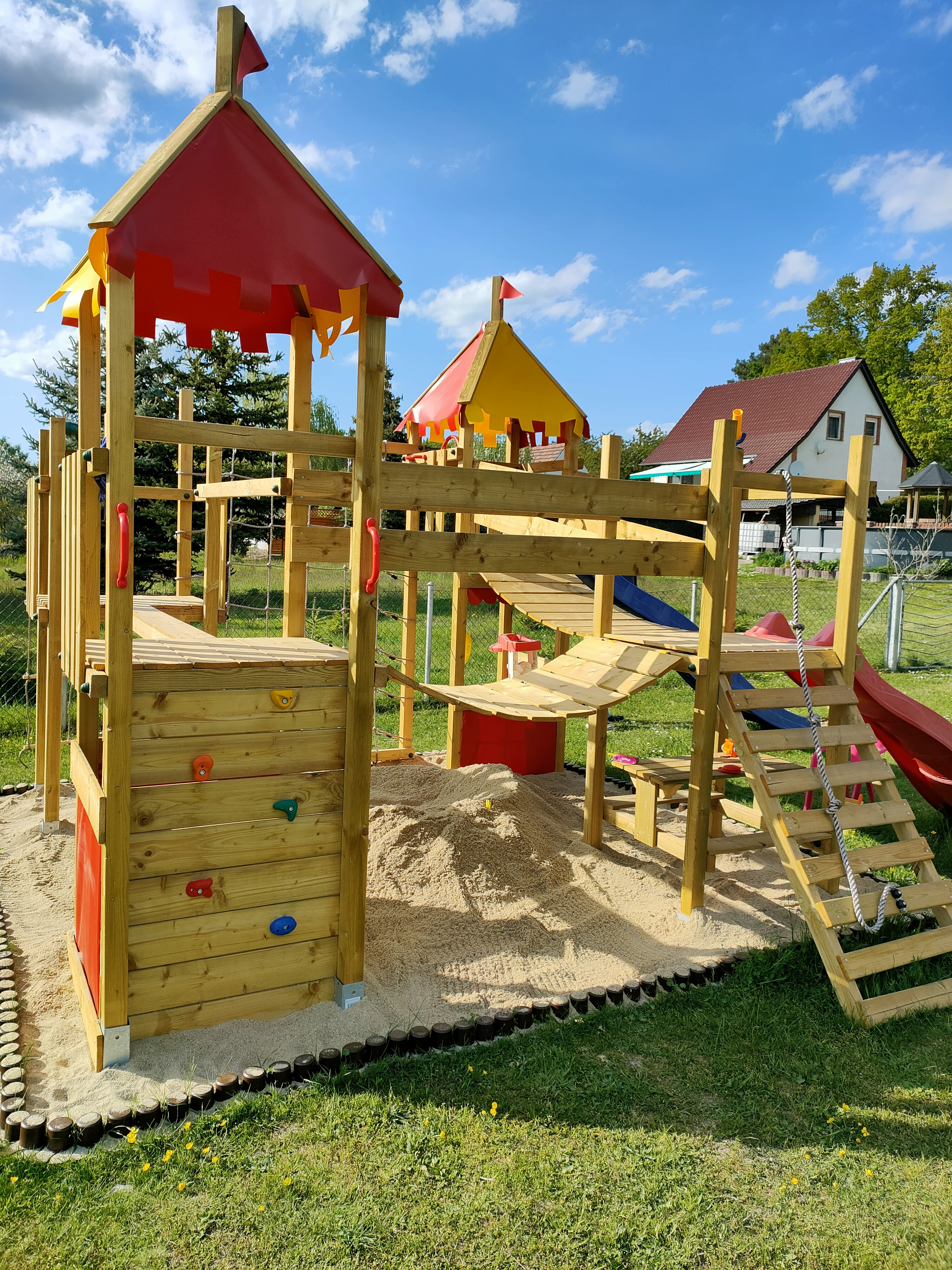 Solid spruce and pine wood from Europe give our playground equipment its individual character. As a sustainable material, they offer a natural look and are particularly durable outdoors. We place special emphasis on the responsible use and quality of our wood to ensure that your children can play safely.