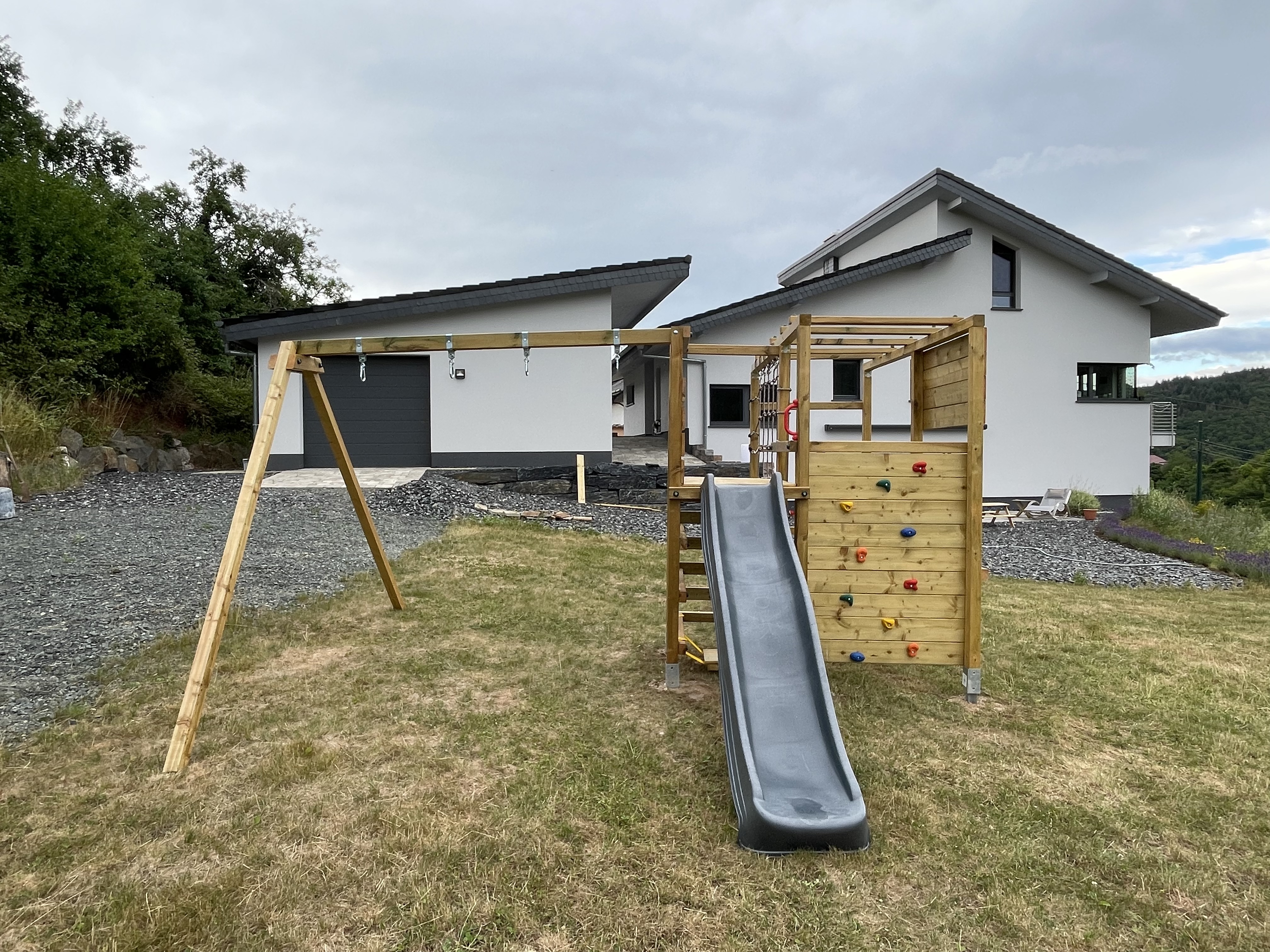 Solid spruce and pine wood from Europe give our playground equipment its individual character. As a sustainable material, they offer a natural look and are particularly durable outdoors. We place special emphasis on the responsible use and quality of our wood to ensure that your children can play safely.